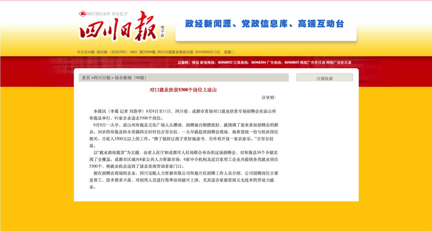 對口就業(yè)扶貧5300個崗位上涼山